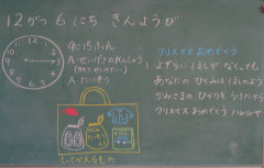 子どもたちに、その日の主な予定をお話で伝えたり、黒板に書いてお知らせしています。
